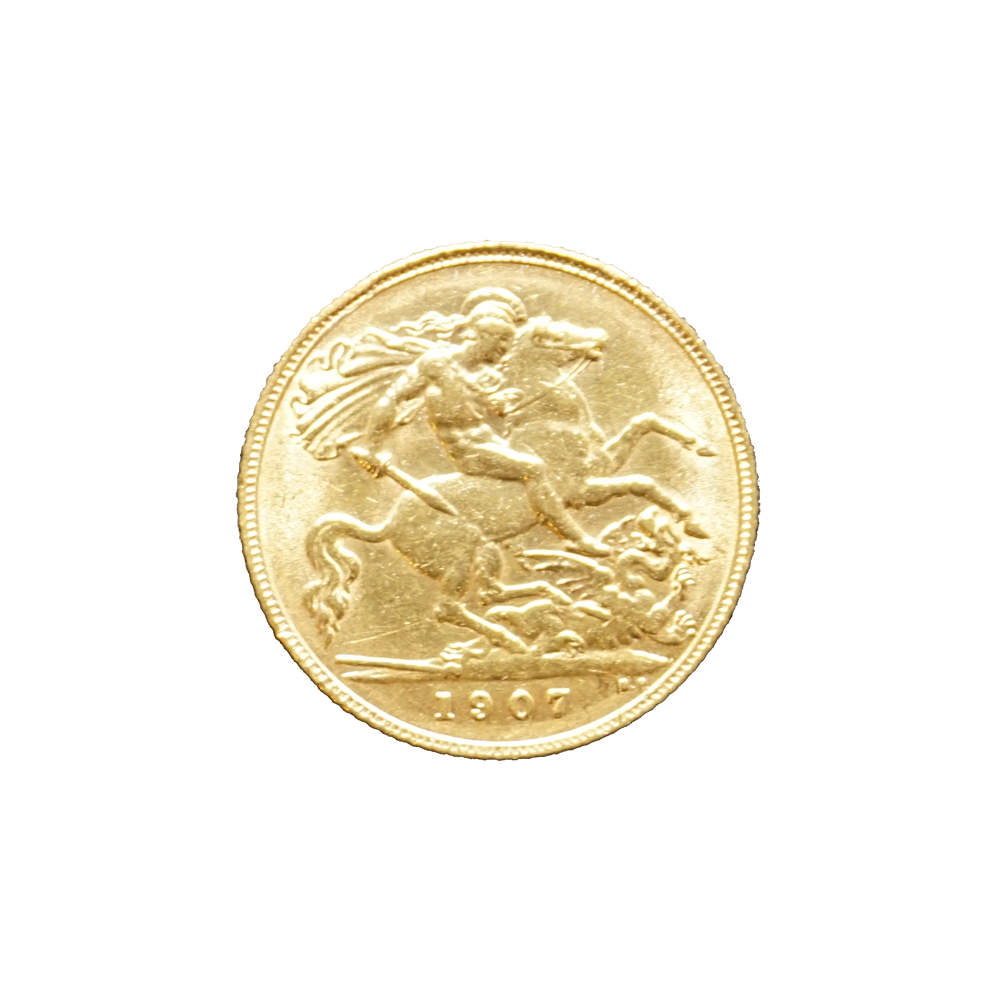 Moeda de ouro de origem inglesa datada de 1907.
