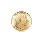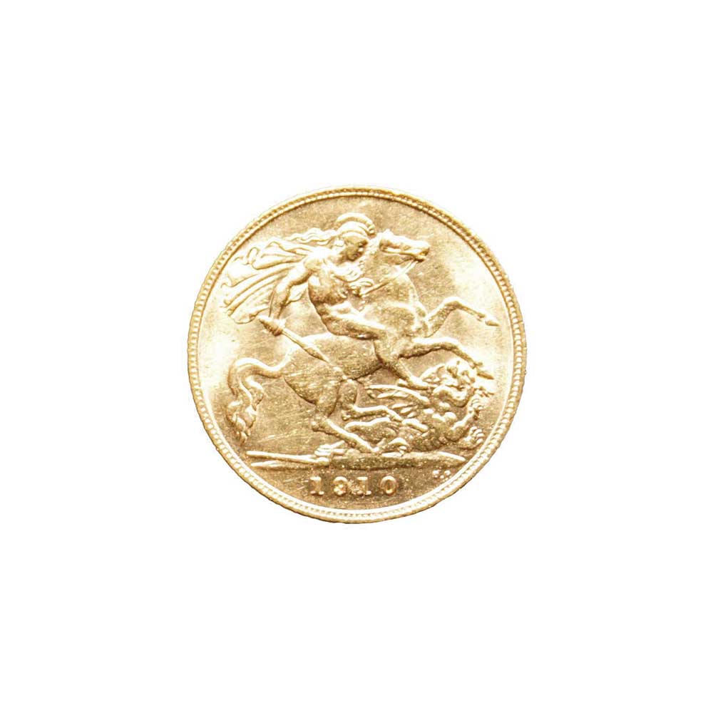 Moeda de ouro original do Reino Unido datada do ano de 1910.
