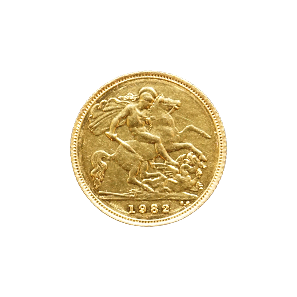 Moeda de ouro original do Reino Unido datada do ano de 1982.