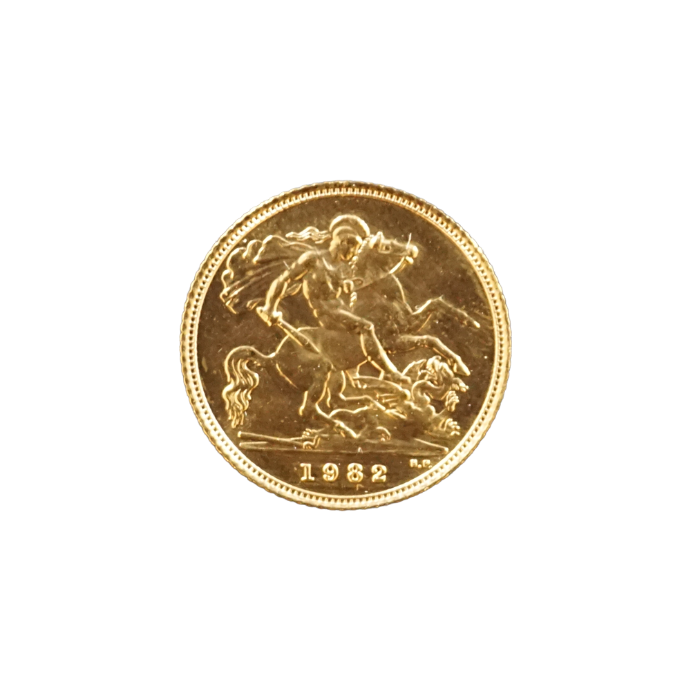 Moeda de ouro original do Reino Unido datada do ano de 1982.