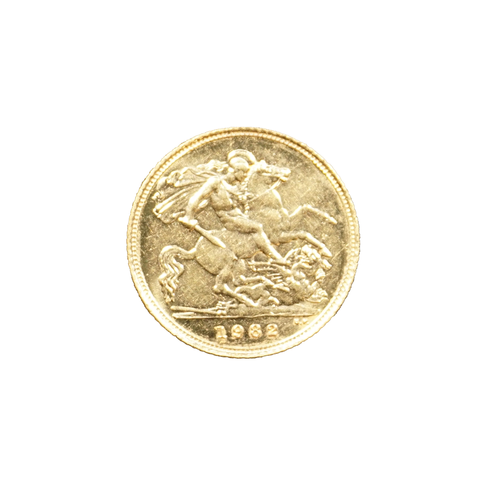 Moeda de ouro original do Reino Unido datada do ano de 1982.
