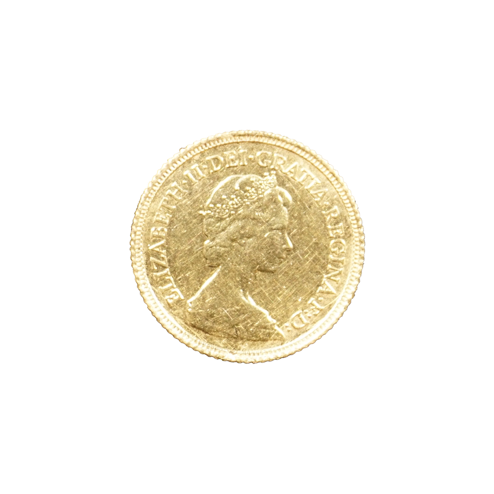 Moeda de ouro original do Reino Unido datada do ano de 1982.
