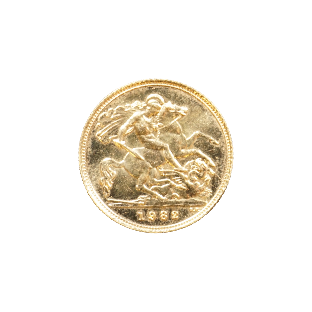 Moeda de ouro original do Reino Unido datada do ano de 1982.