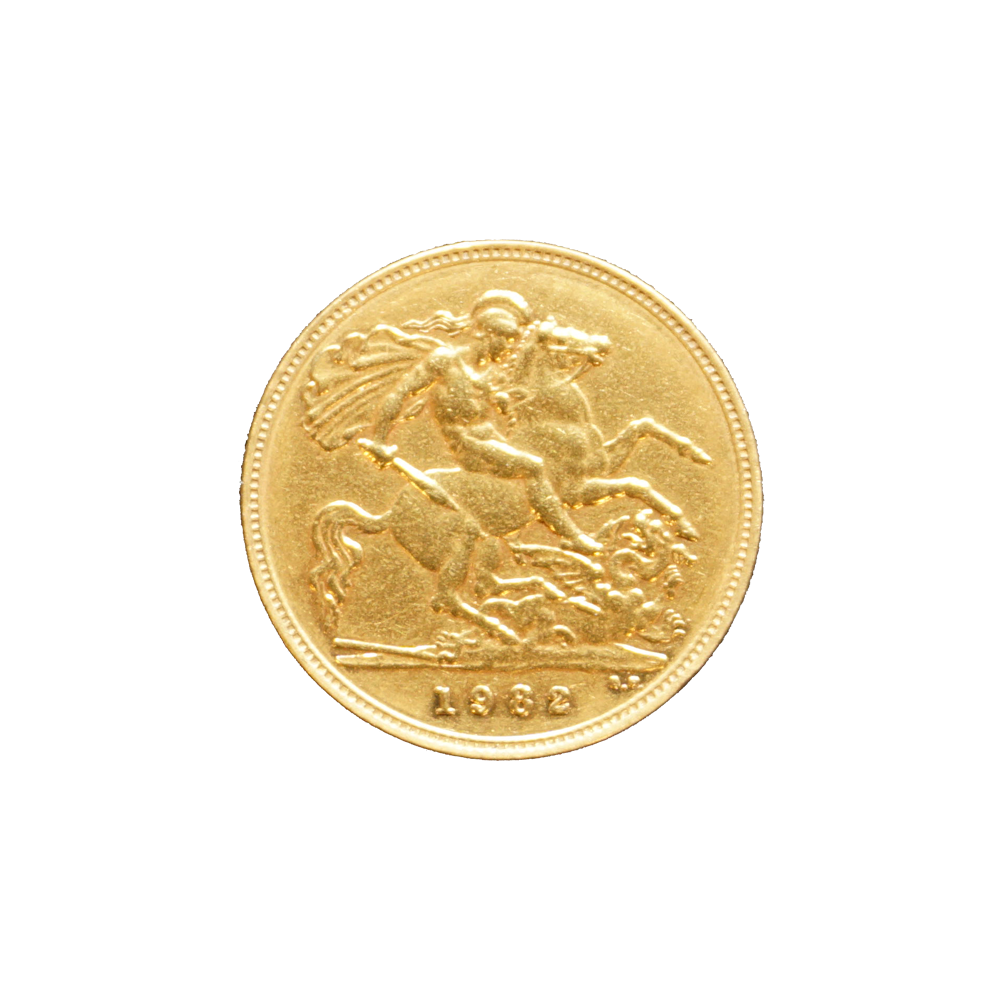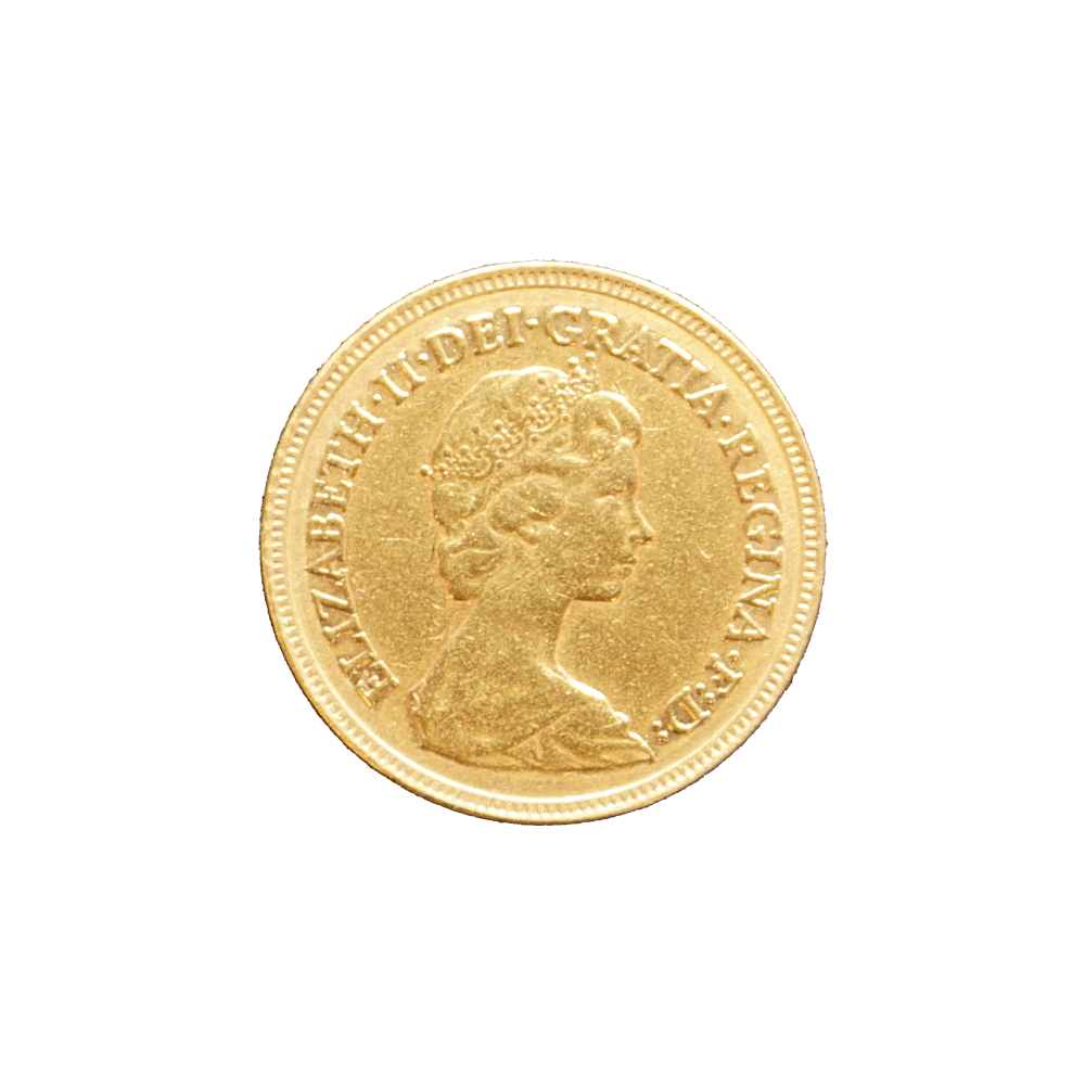 Moeda de ouro original do Reino Unido datada do ano de 1982.