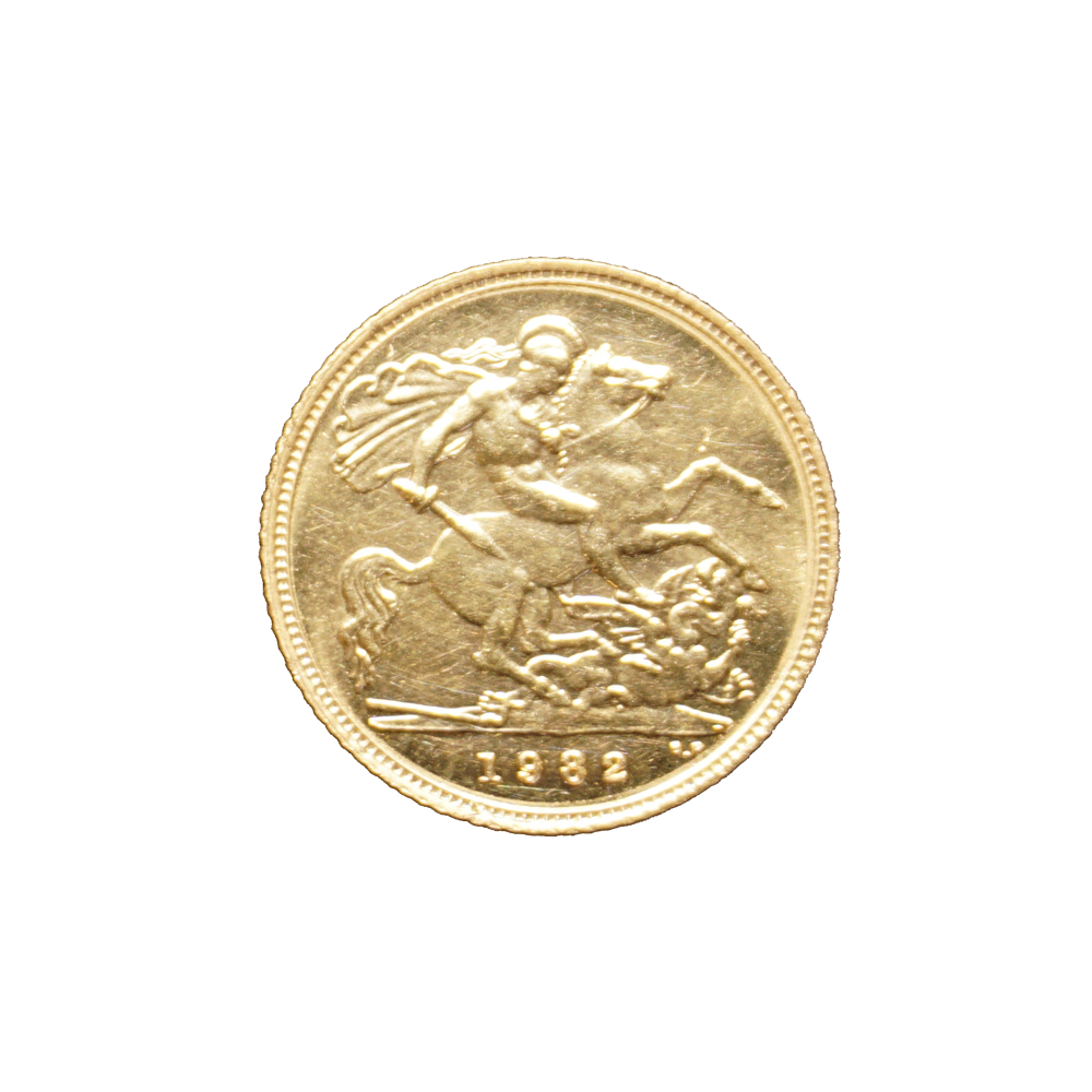 Moeda de ouro original do Reino Unido datada do ano de 1982.