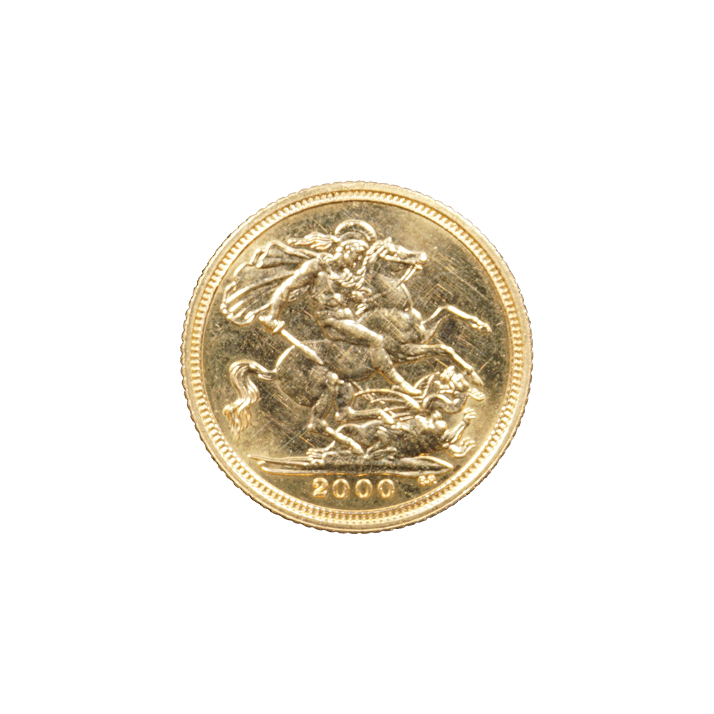 Moeda de ouro original do Reino Unido datada do ano de 2000.