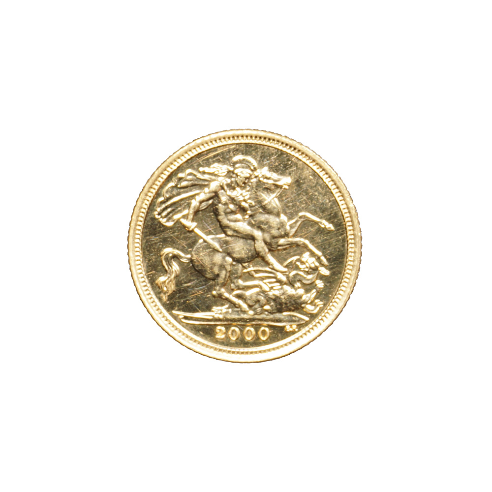 Moeda de ouro original do Reino Unido datada do ano de 2000.