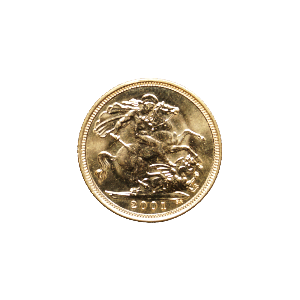 Moeda de ouro original do Reino Unido datada do ano de 2001.