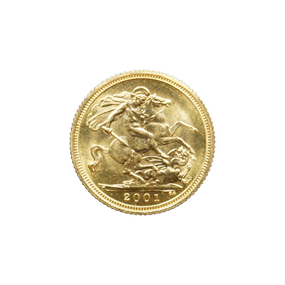 Moeda de ouro original do Reino Unido datada do ano de 2001.