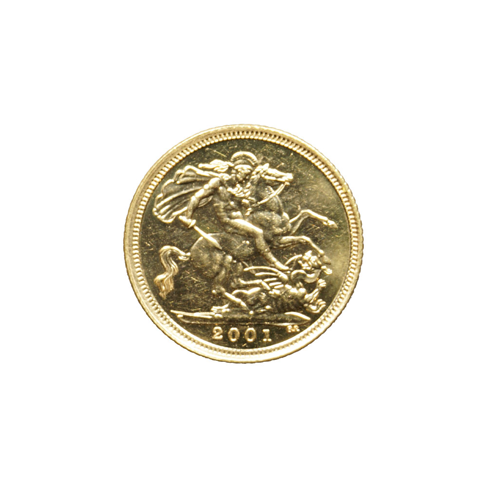 Moeda de ouro original do Reino Unido datada do ano de 2001.