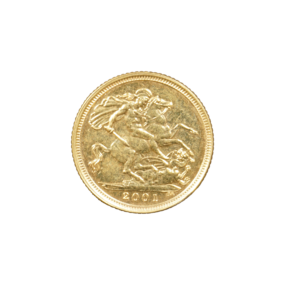 Moeda de ouro original do Reino Unido datada do ano de 2001.