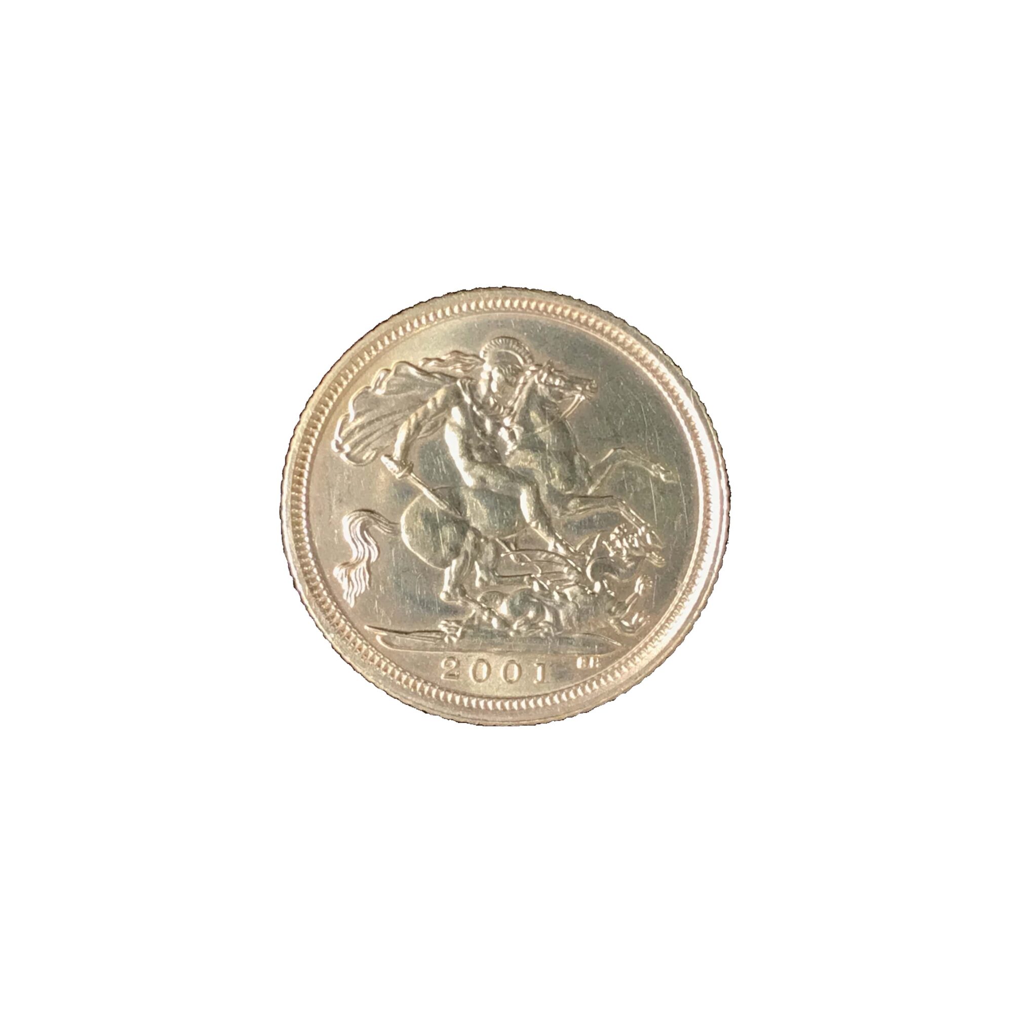 Moeda de ouro original do Reino Unido datada do ano de 2001.