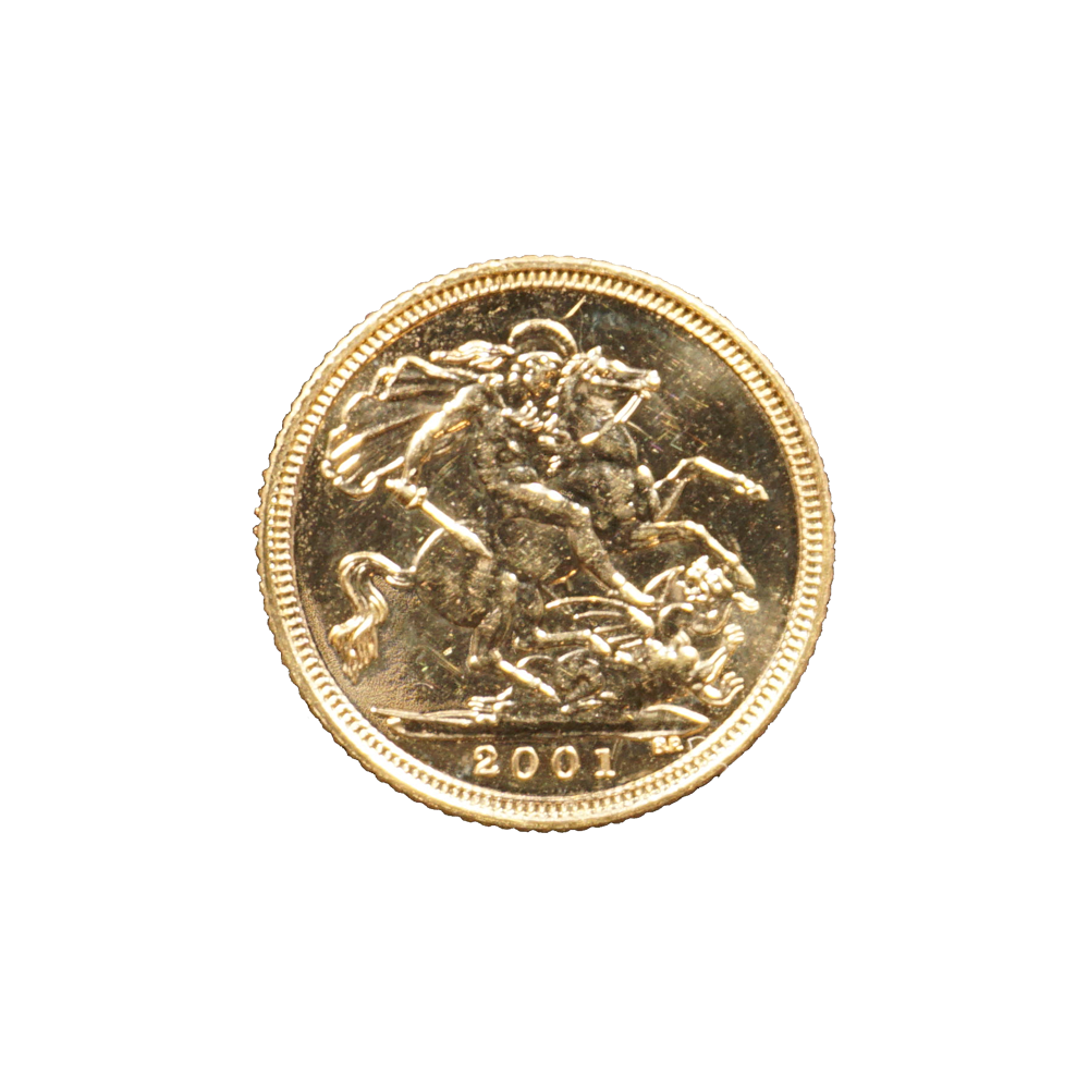 Moeda de ouro original do Reino Unido datada do ano de 2001.