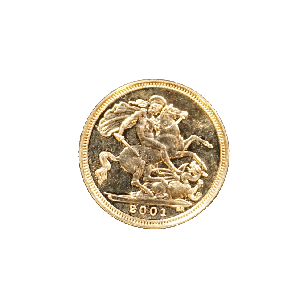 Moeda de ouro original do Reino Unido datada do ano de 2001.