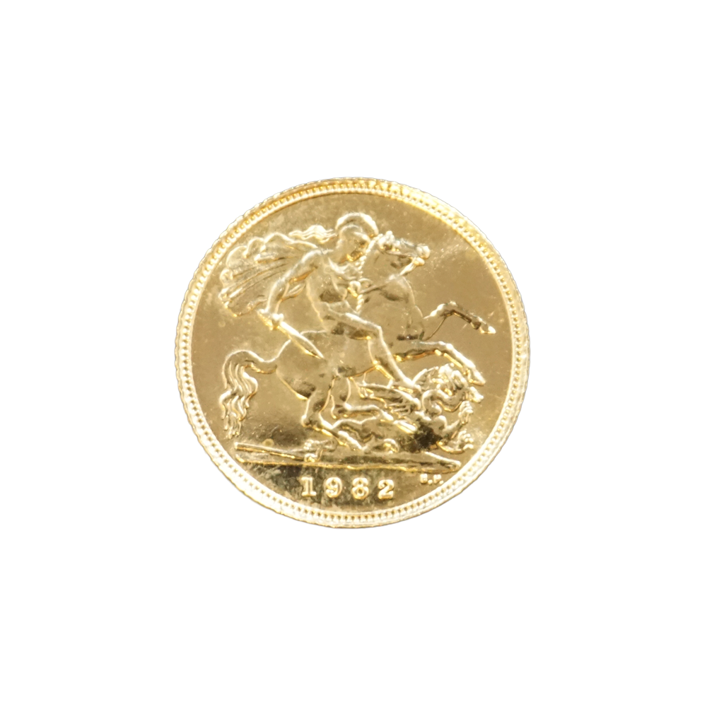 Moeda de ouro original do Reino Unido datada do ano de 1982.