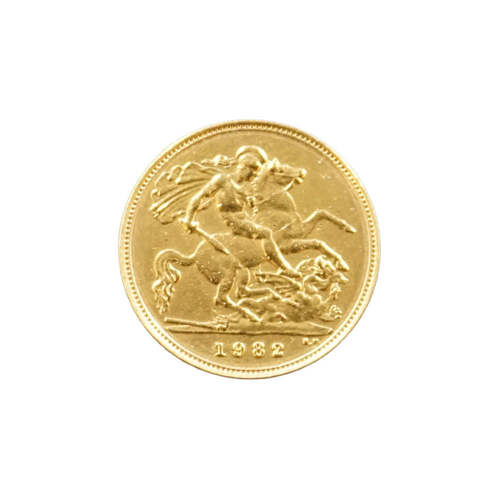 Moeda de ouro original do Reino Unido datada do ano de 1982.