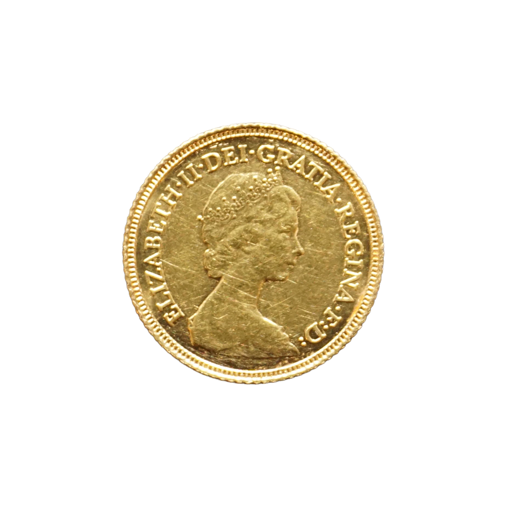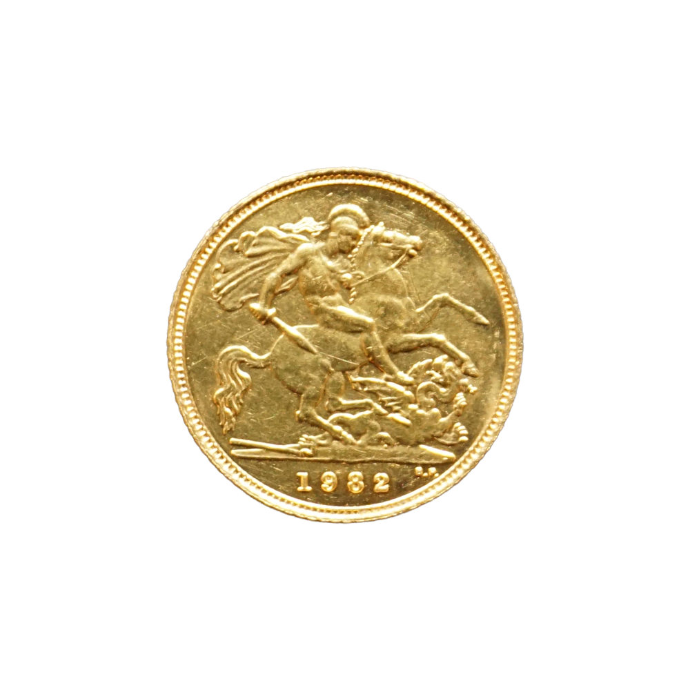 Moeda de ouro original do Reino Unido datada do ano de 1982.