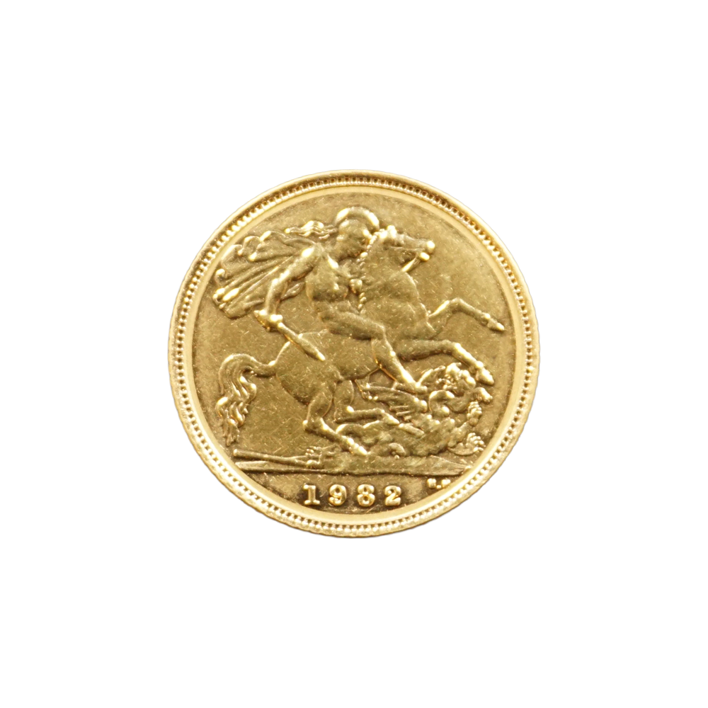 Moeda de ouro original do Reino Unido datada do ano de 1982.