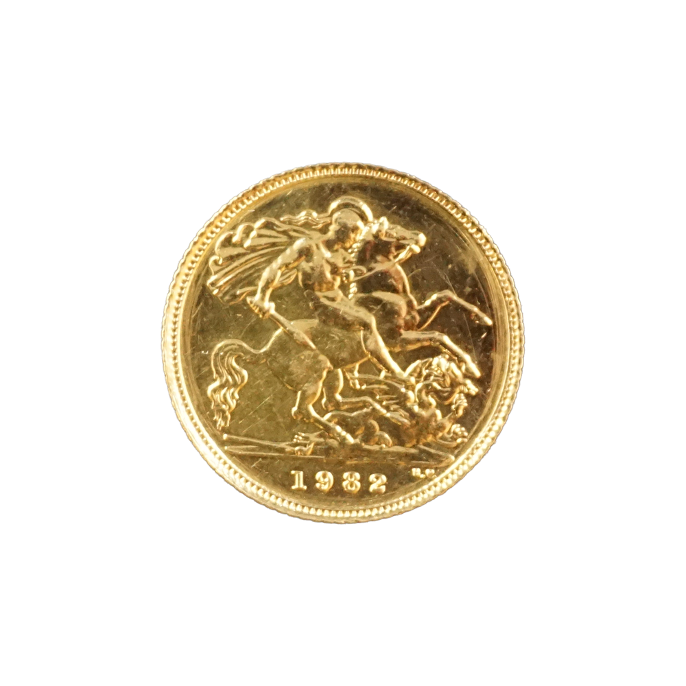 Moeda de ouro original do Reino Unido datada do ano de 1982.