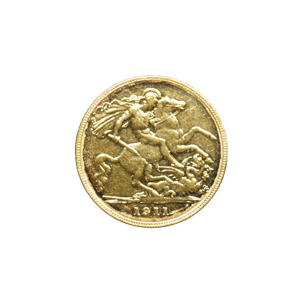 Moeda de ouro original do Reino Unido datada do ano de 1911.