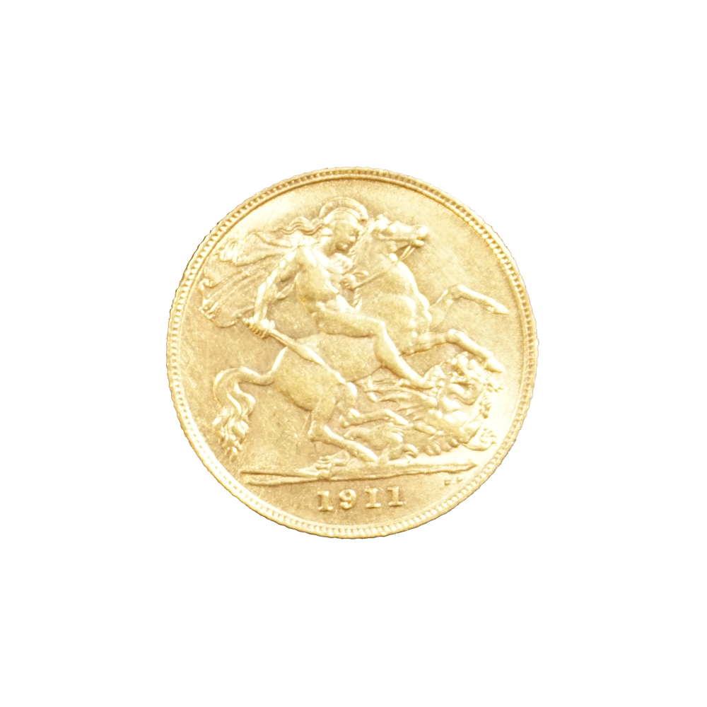 Moeda de ouro original do Reino Unido datada do ano de 1911.