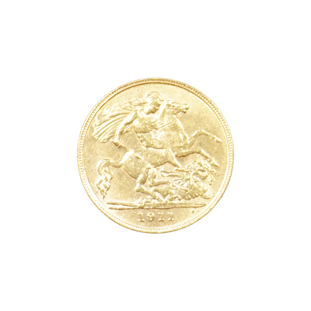 Moeda de ouro original do Reino Unido datada do ano de 1911.