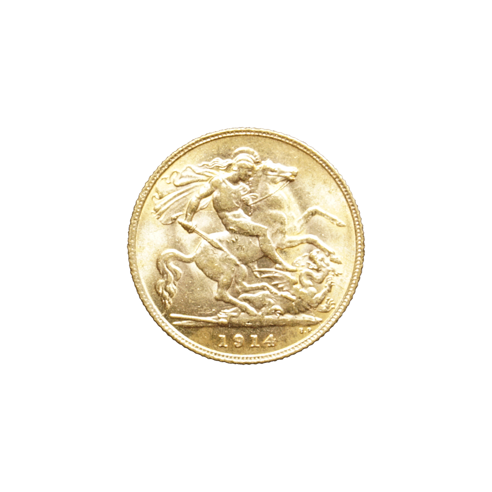 Moeda de ouro original do Reino Unido datada do ano de 1914.