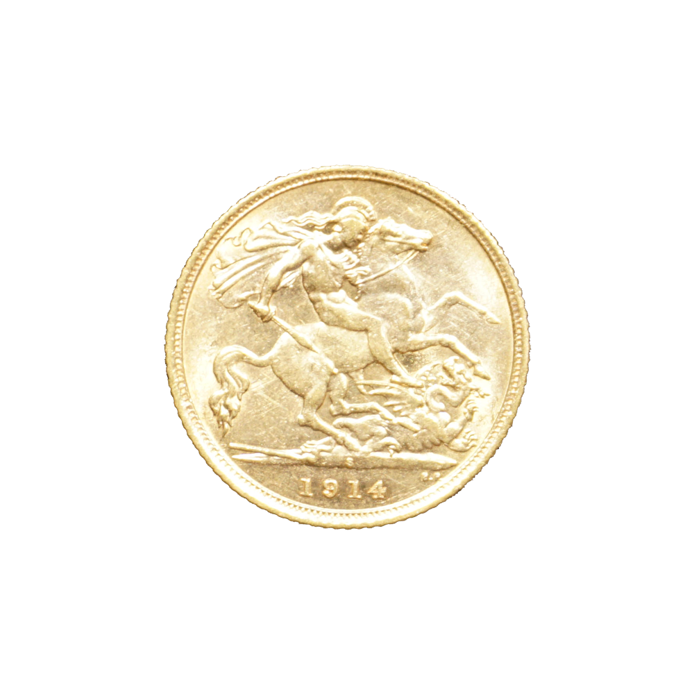 Moeda de ouro original do Reino Unido datada do ano de 1914.