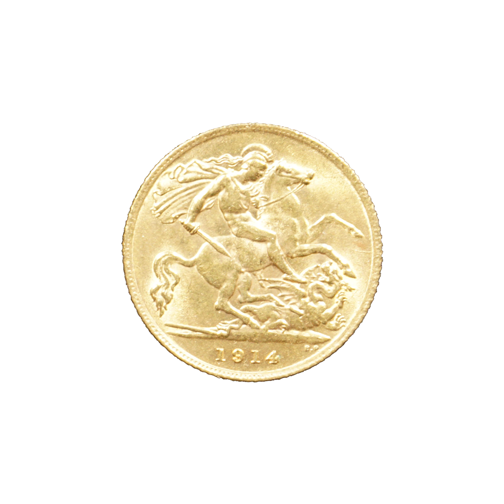 Moeda de ouro original do Reino Unido datada do ano de 1914.