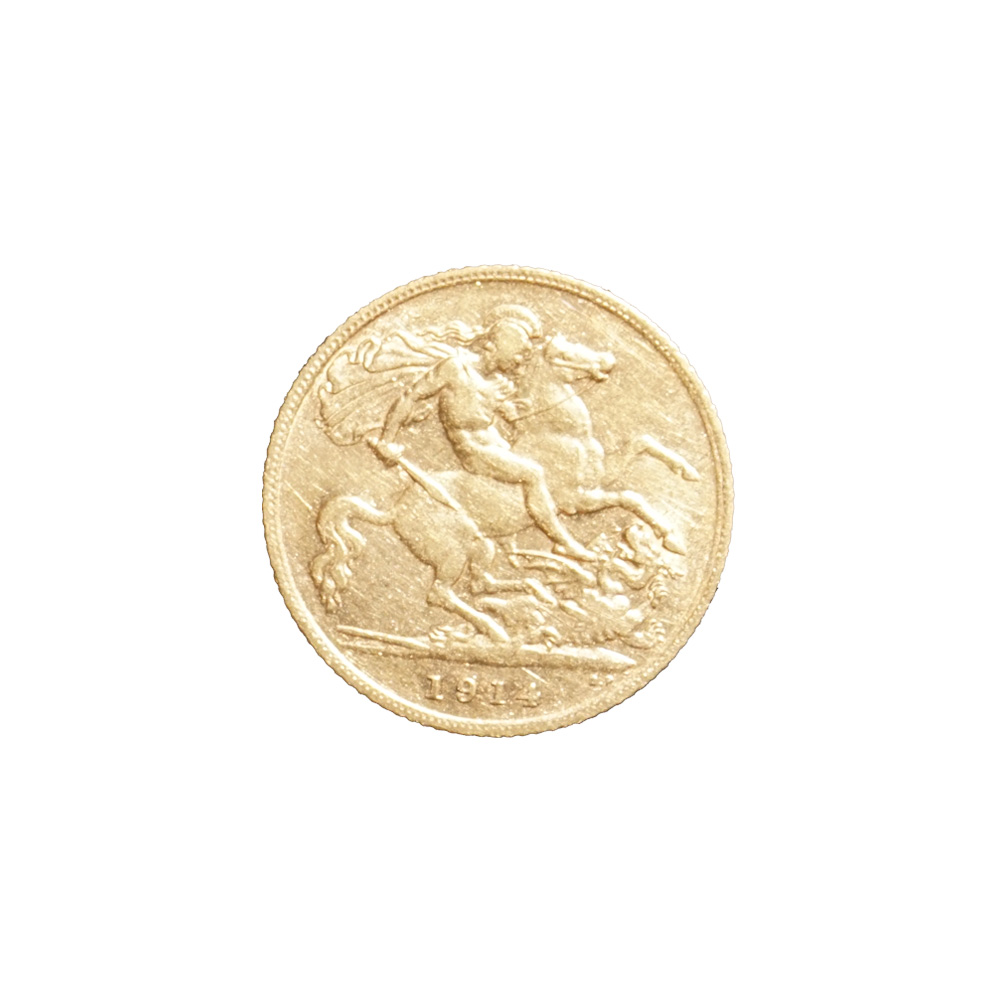 Moeda de ouro original do Reino Unido datada do ano de 1914.