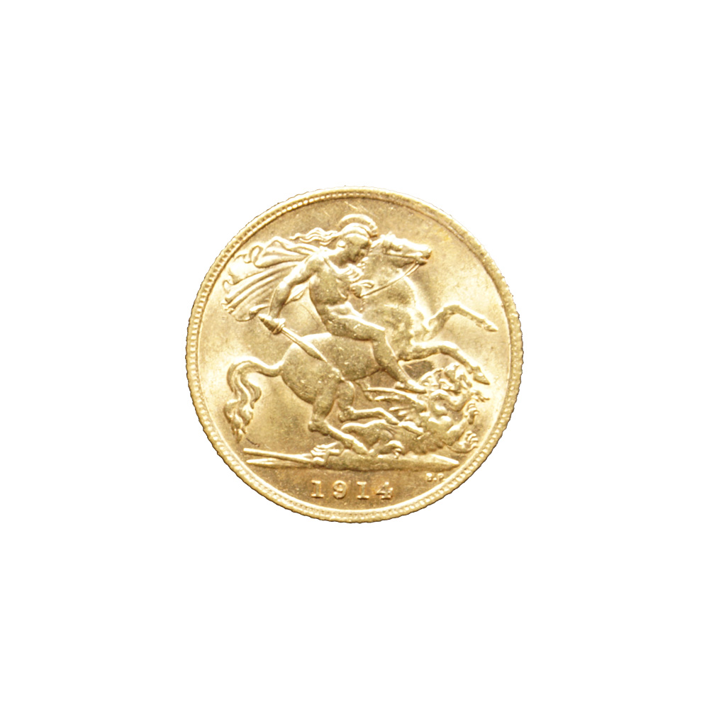 Moeda de ouro original do Reino Unido datada do ano de 1914.