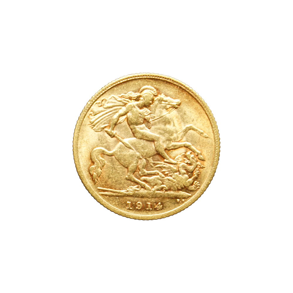 Moeda de ouro original do Reino Unido datada do ano de 1914.