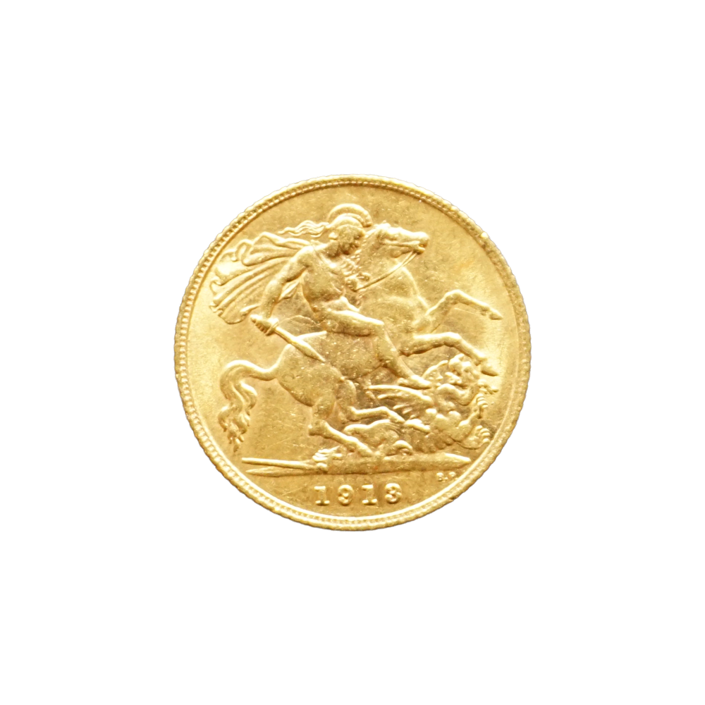 Moeda de ouro original do Reino Unido datada do ano de 1913.