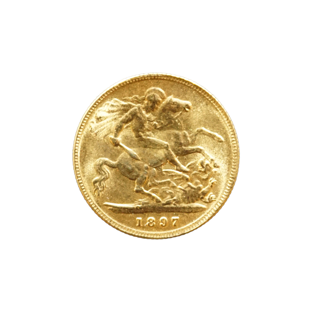 Moeda de ouro original do Reino Unido datada do ano de 1897.