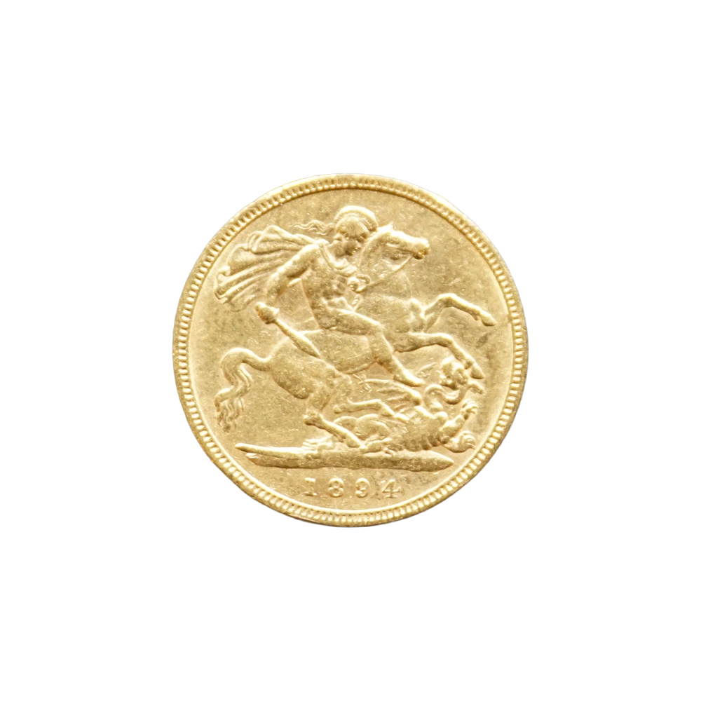 Moeda de ouro original do Reino Unido datada do ano de 1894.