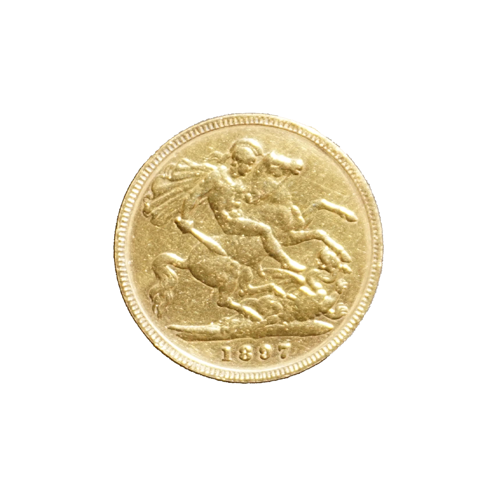Moeda de ouro original do Reino Unido datada do ano de 1897.
