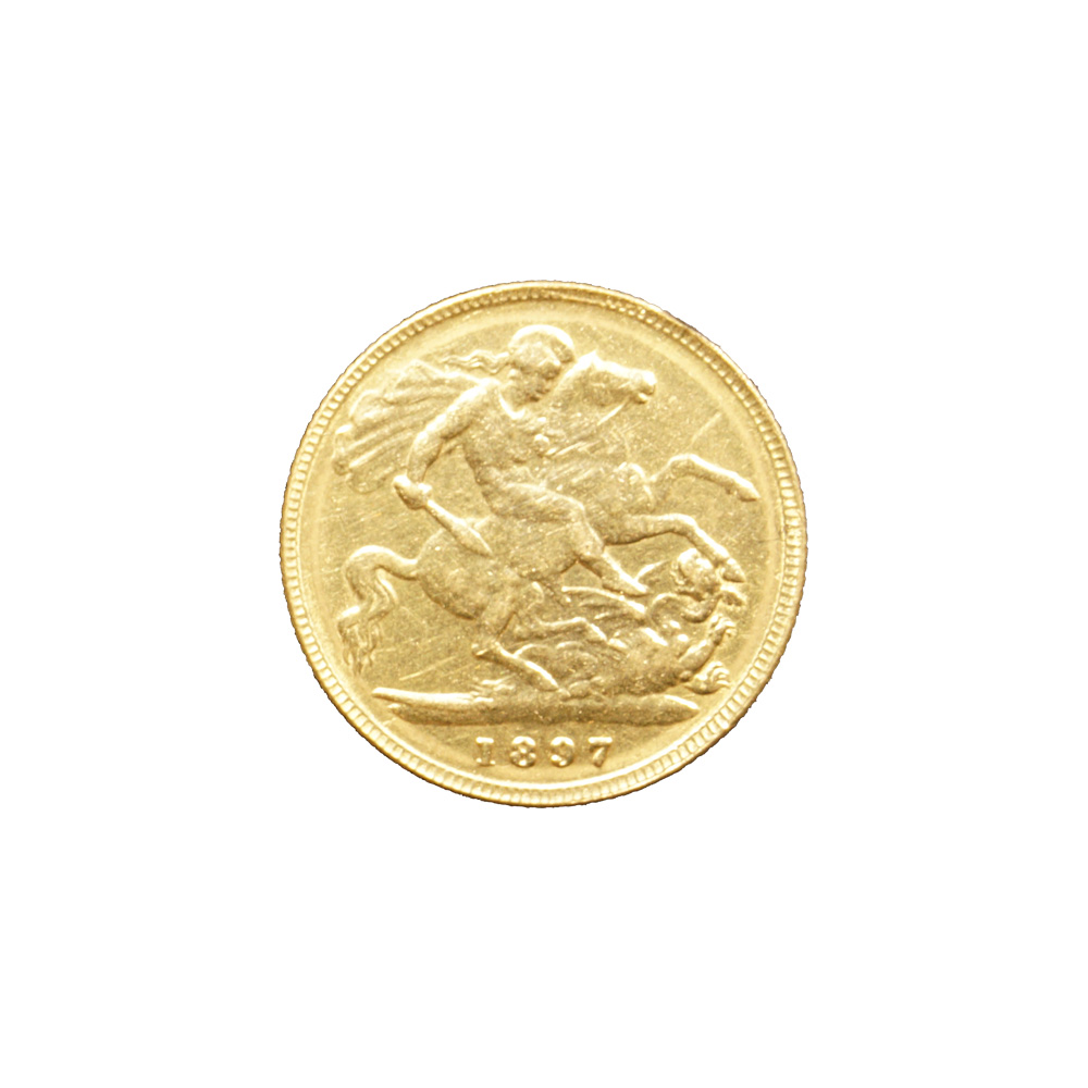 Moeda de ouro original do Reino Unido datada do ano de 1897.