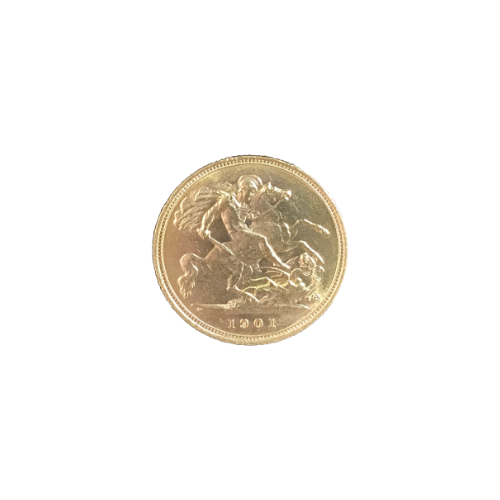 Moeda de ouro original do Reino Unido datada do ano de 1901.