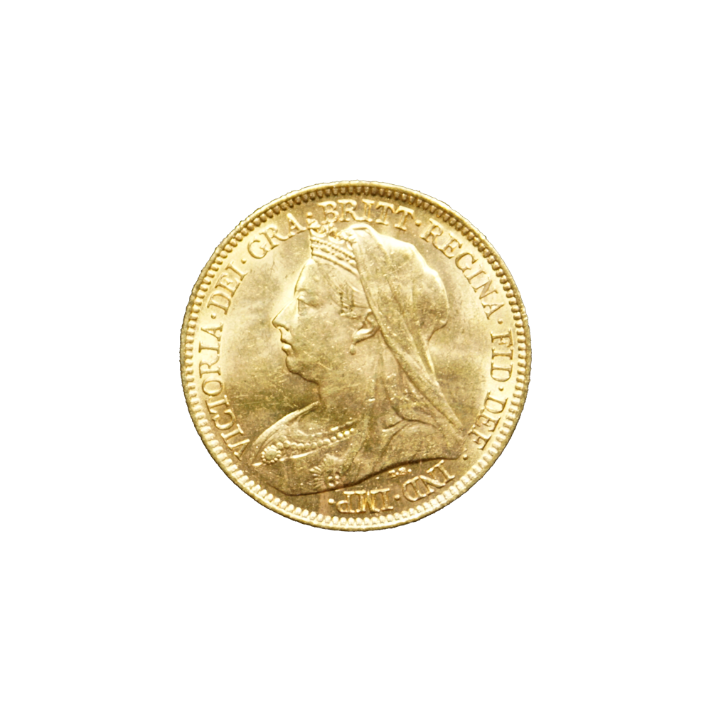 Moeda de ouro original do Reino Unido datada do ano de 1901.