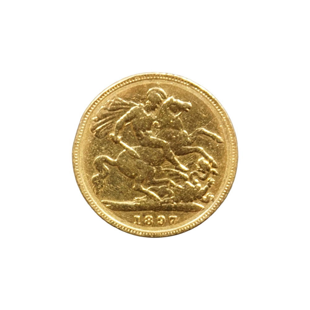 Moeda de ouro original do Reino Unido datada do ano de 1897.