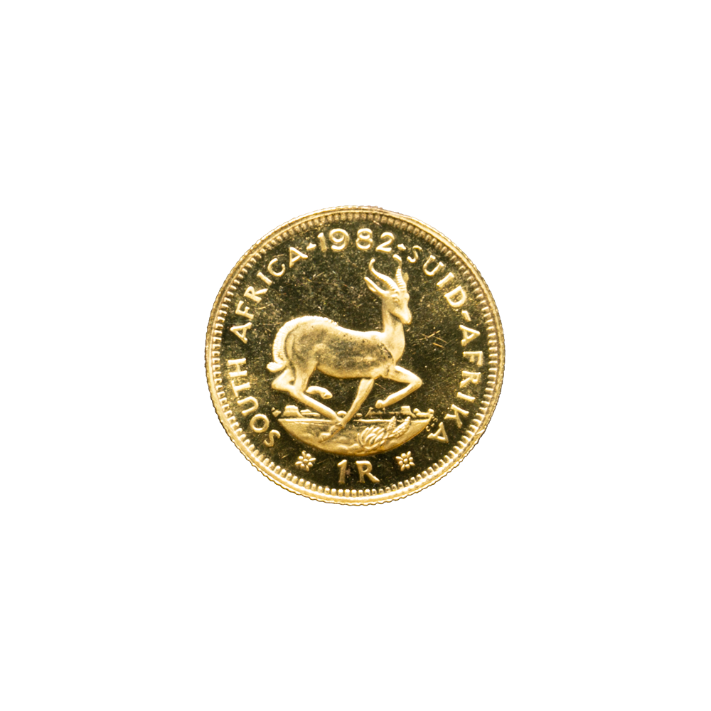 Moeda de ouro original da África do Sul datada do ano de 1982.