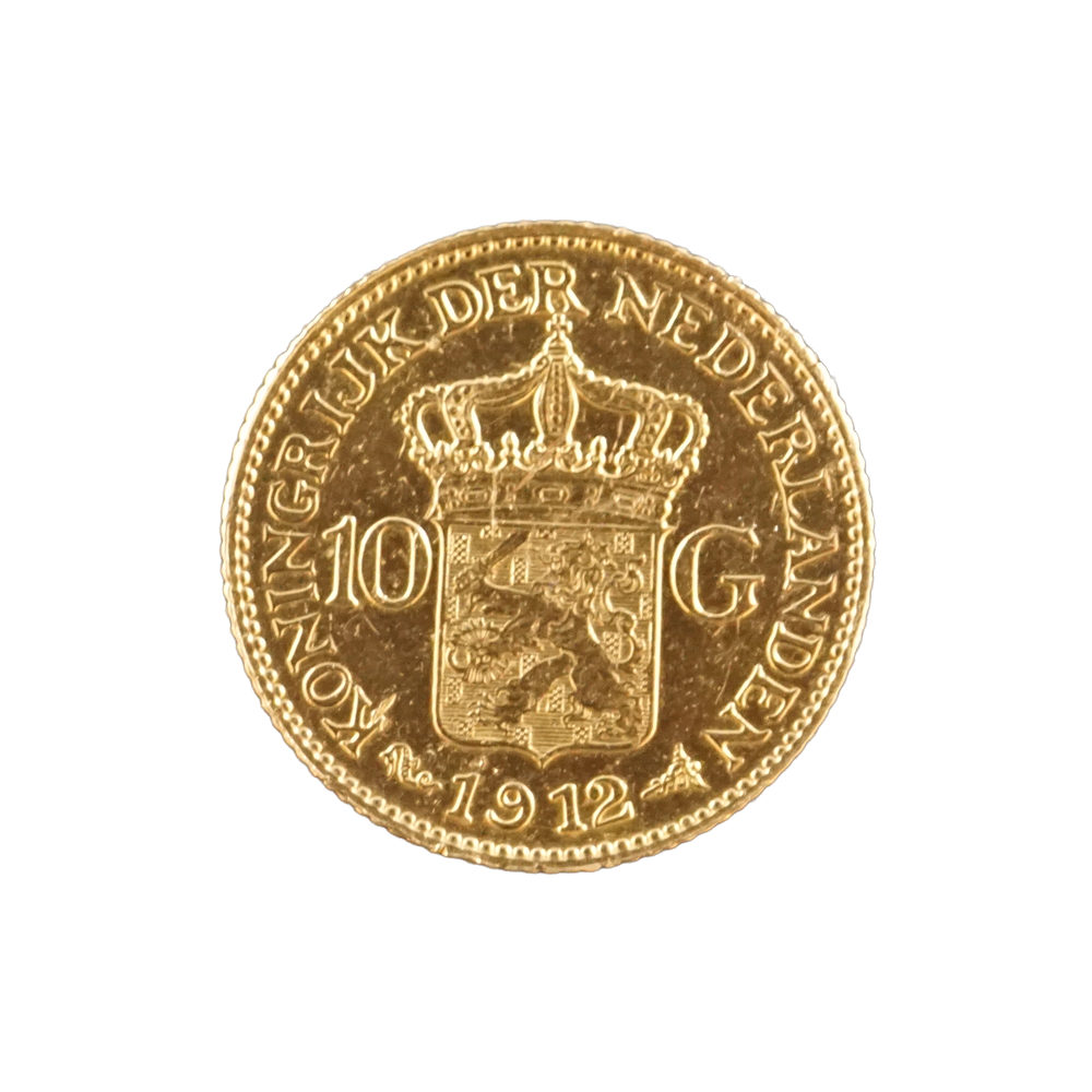 Moeda de ouro original dos Países Baixos datada do ano de 1912.