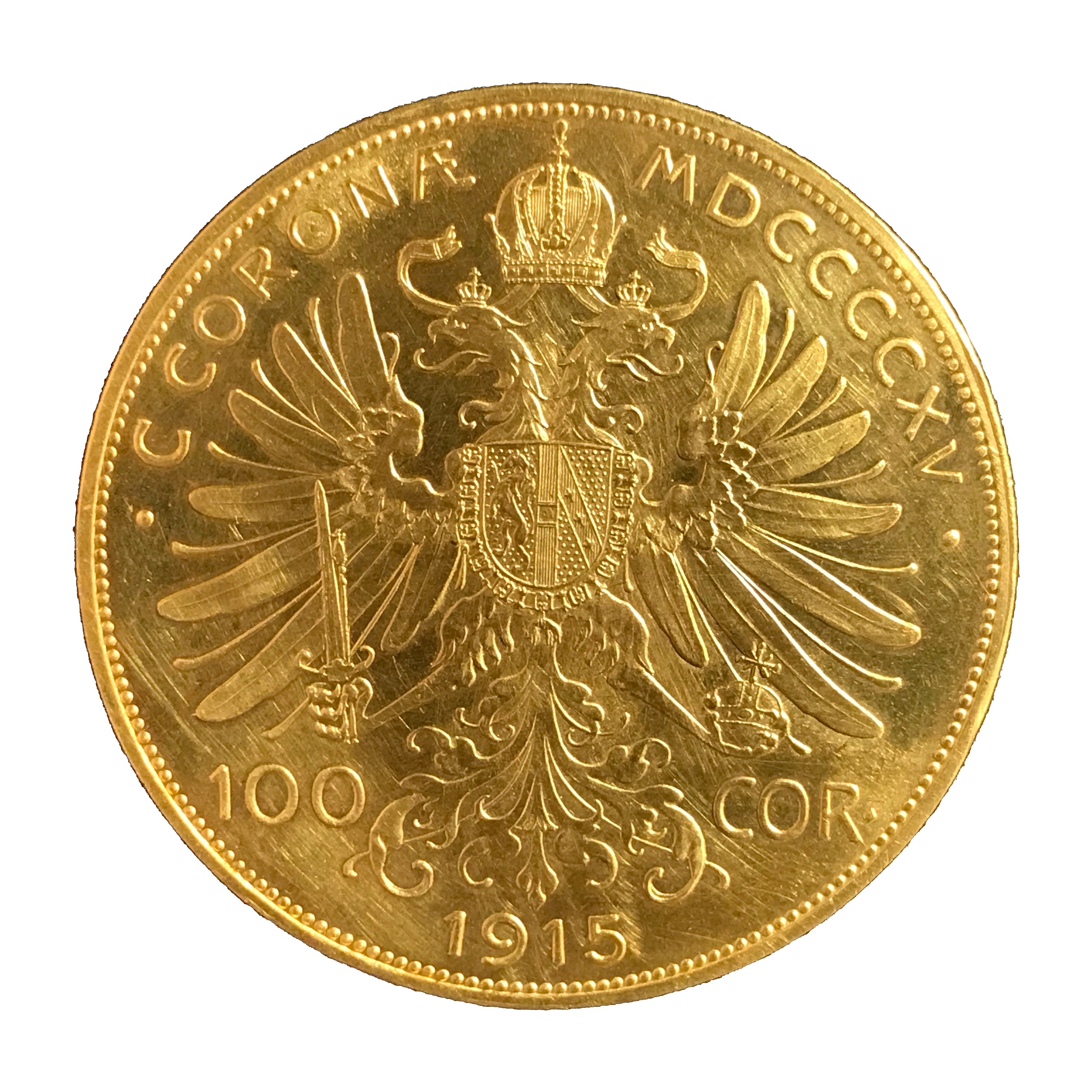 Moeda de ouro original da Áustria datada do ano de 1915.