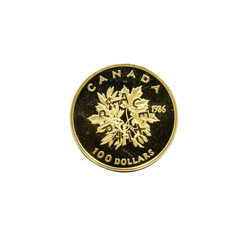 Moeda de ouro original do Canadá datada do ano de 1986.