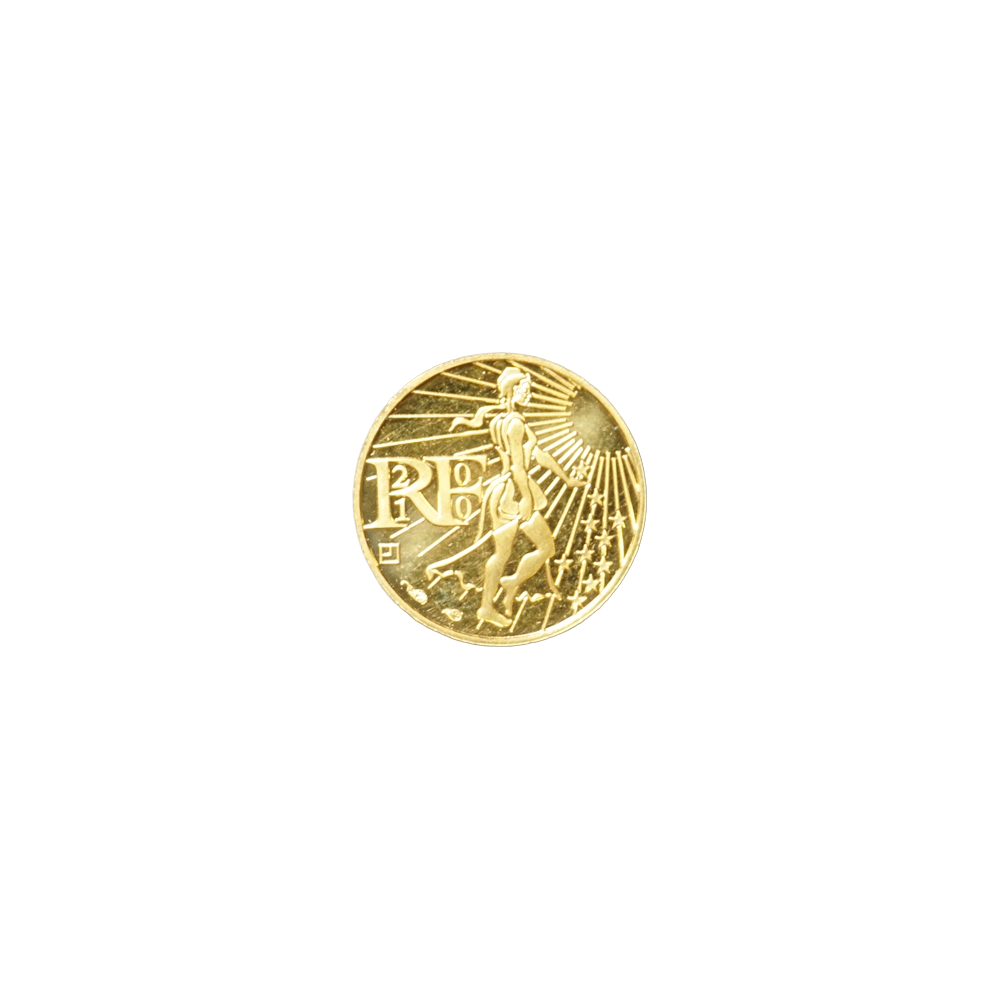 Moeda de ouro original de França datada do ano de 2010.
