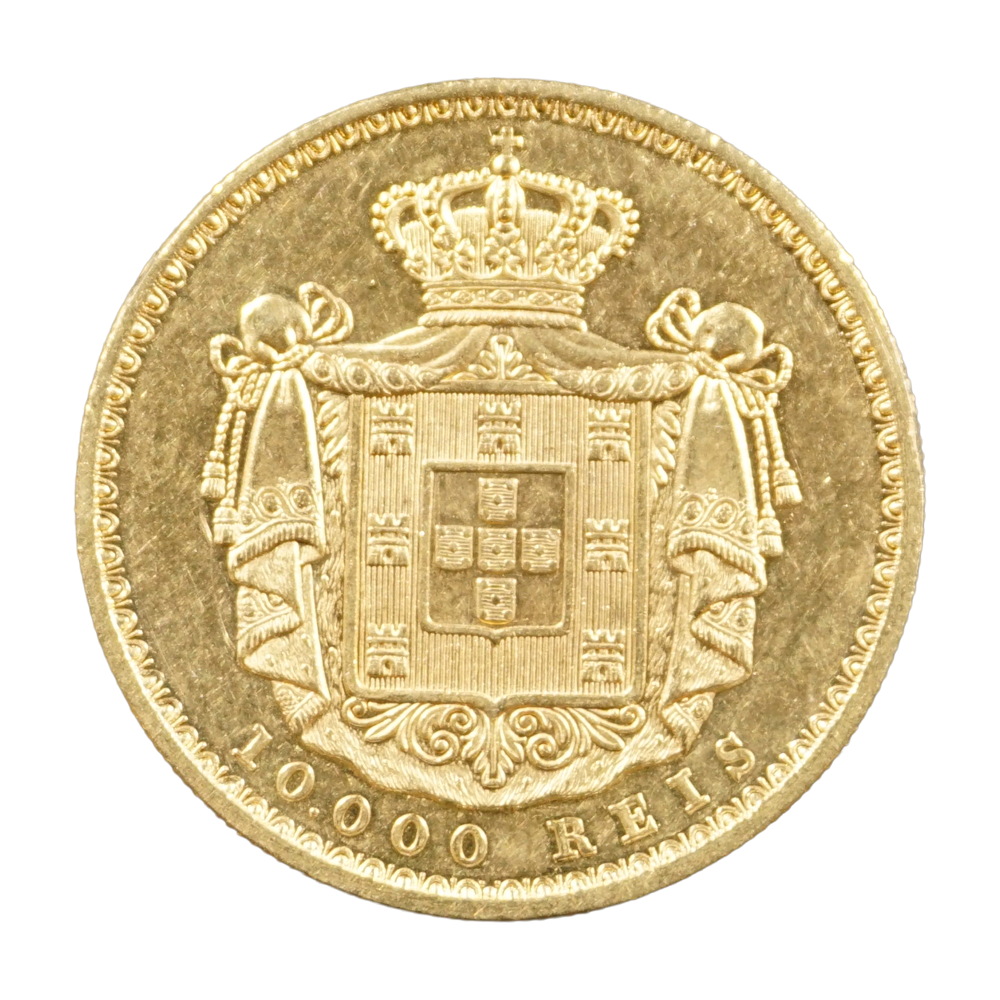 Moeda de ouro original de Portugal datada do ano de 1882.
