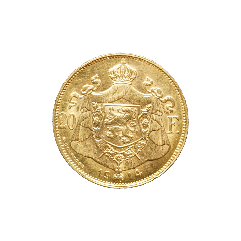 Moeda de ouro de origem belga datada de 1914.