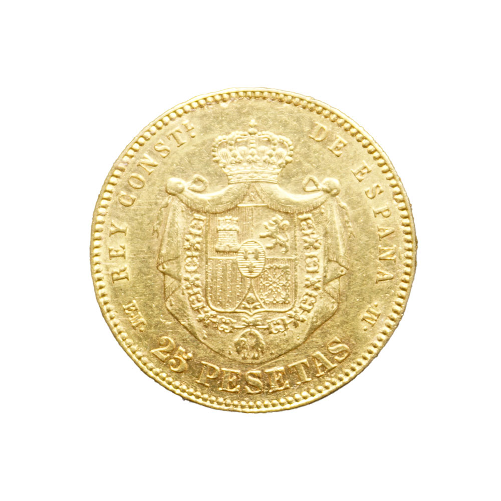 Moeda de ouro original de Espanha datada do ano de 1878.