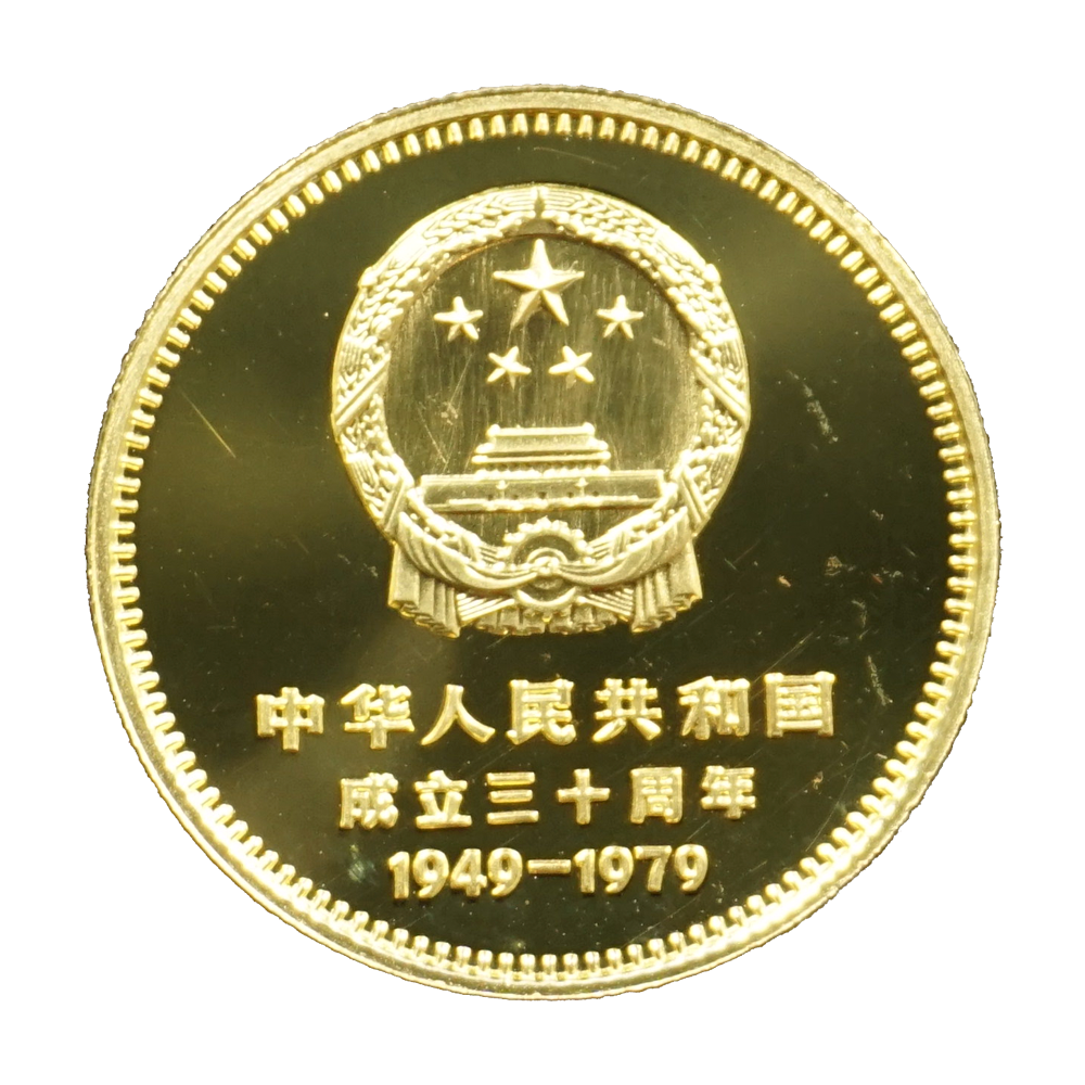 Moeda de ouro original da China datada do ano de 1949-1979.