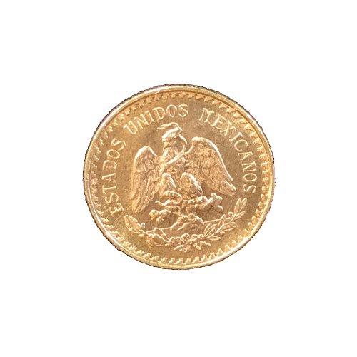 Moeda de ouro original do México datada do ano de 1945. Moeda com brasão.